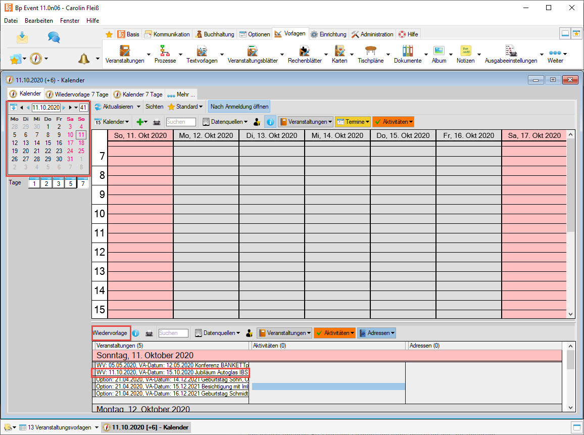 Mit Abschluss dieser Aufgabe haben Sie die Adresse des Kunden aufgerufen und geprüft. Eine Veranstaltung aus einer Vorlage mit allen relevanten Daten angelegt.
