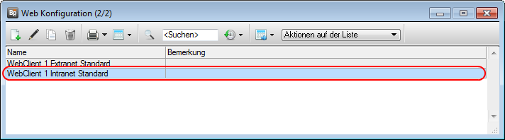 Wie in der folgenden Abbildung ersichtlich öffnen Sie die Konfiguration für den WebClient 1 Intranet Standard.